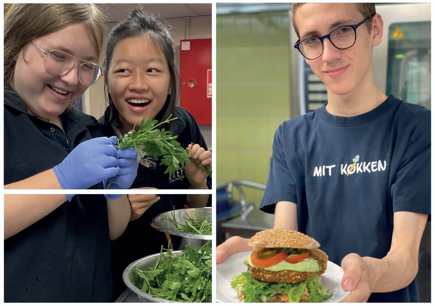Vi arbejder med produktion af mad til hele skolen. Vi skal snitte, bage og stege alverdens grønsager og bæredygtige varer.